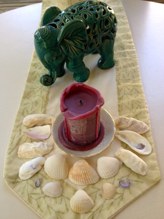 Originally, I had two old window frames leaning against the wall of windows on either side of the table above. I placed the two bird prints in front of them, liking the way they looked set against the old windows. Then a friend came by and exclaimed over how perfect they were on the porch and suggested I hang them off the old window frames. That sounded interesting to me, so I tried it and loved it. I then decided to take off some of the green pillows and accents on the porch and replace them with teal blue pillows I had to help tie the prints to the porch ~ the bright teal looks wonderful with the yellows and purples and bright pinks. It’s all very cheery. And sometime in the next couple of weeks, I’m going to paint an old mantel that same bright teal and put it on the opposite wall on the porch ~ it’s going to be fab. And then there’s the shell mirror... more on that later.